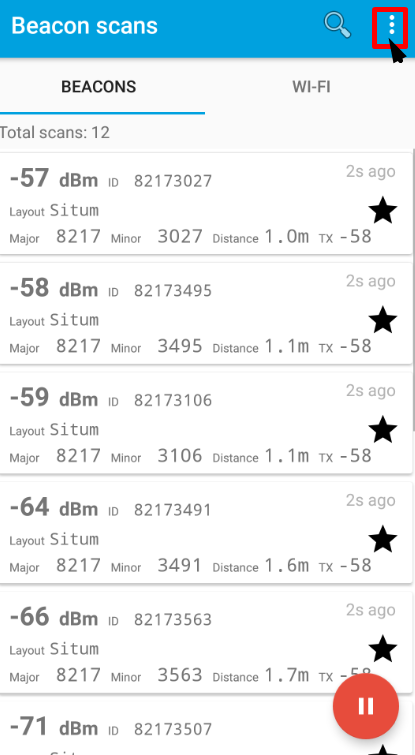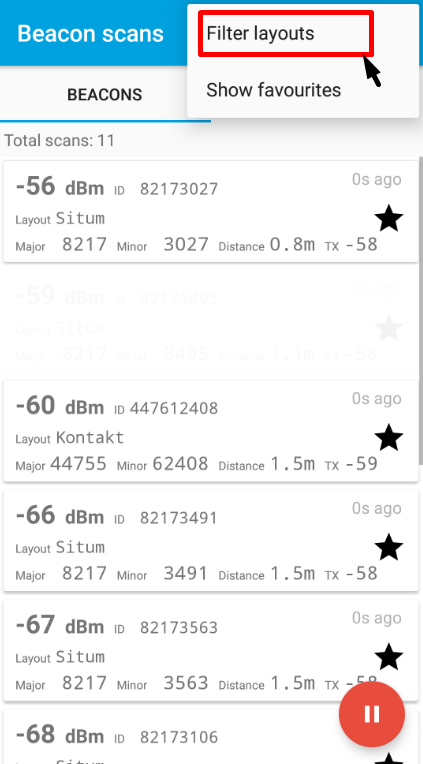 - Situated on the Beacons tab, click the icon with the three vertical dots and choose Filter layouts: