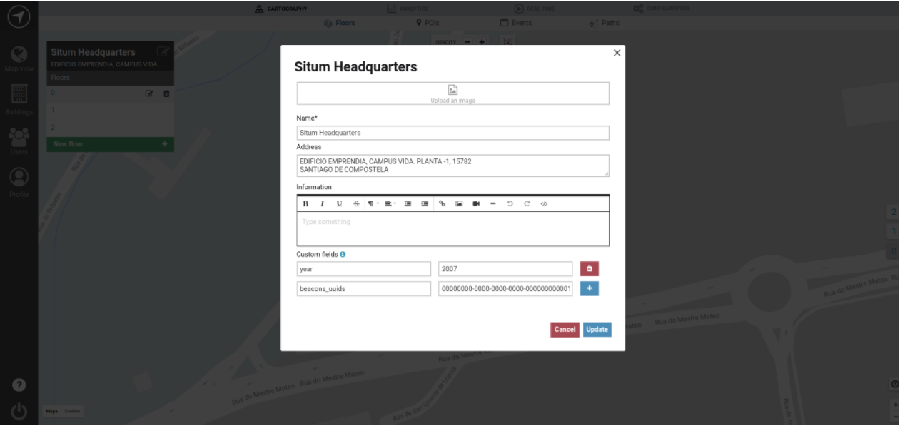 Firstly, please bear in mind that, according to our guide on how to use BLE beacons with Situm, custom fields should be created in the building and not the floor.