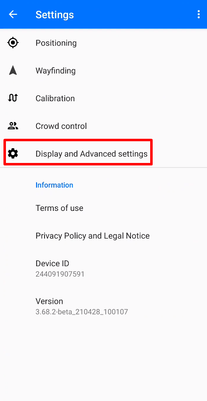 - Go back to the main page using the arrow or the button on the phone and start positioning. Then, click on the section highlighted below: