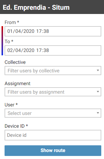 Not unlike the previous analytics section, you will have to specify a date range. However, it won't be possible to set a date range larger than one (1) day. Additionally, the form will change depending on the type of dashboard you have.