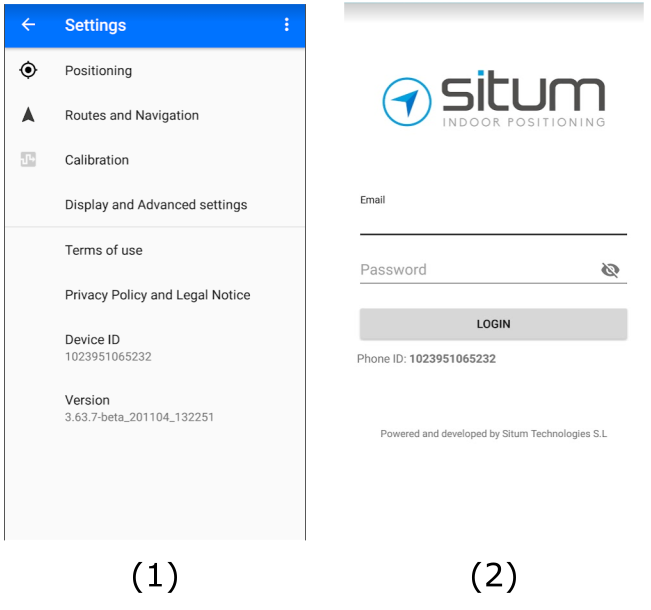 The Device ID is an unique pseudoanonymous identifier that Situm SDK generates for each device. The Device ID can be retrieved from Situm SDKs (e.g. with the SitumSdk.getDeviceID method in Android SDK), and also visualized in (1) Situm Mapping Tool and (2) Situm MRM apps.